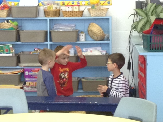 I eavesdropped from the other side of the classroom, and heard each of them quietly say what they were hoping to do, in a proactive, neutral tone. A little more discussion, then JA had an idea that merged with KI's idea. And KI had an idea of how to include CA's idea, who agreed!